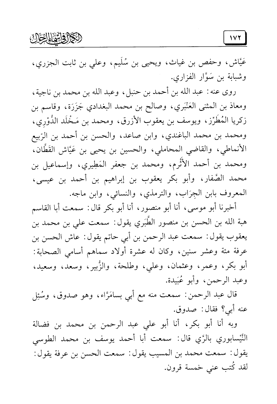 وبه أنا أبو بكر، أنا أبو علي عبد الرحمن بن محمد بن فضالة النَّيْسابوري بالرَّي قال: سمعت أبا أحمد يوسف بن محمد الطوسي يقول: سمعت محمد بن المسيب يقول: سمعت الحسن بن عرفة يقول: لقد كُتب عني خمسة قرون.