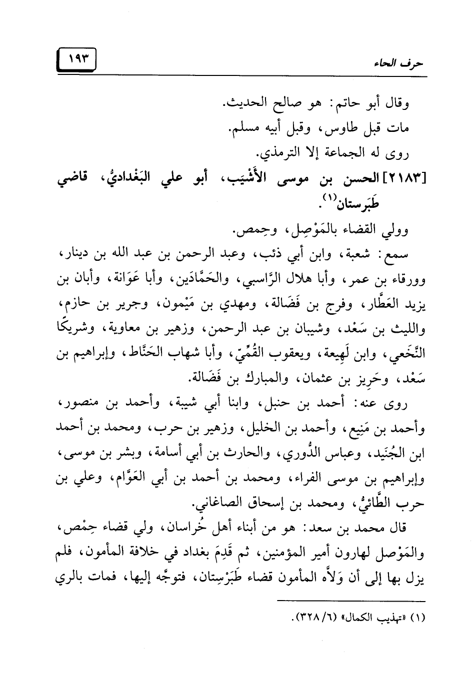 [٢١٨٣] الحسن بن موسى الأَشْيَب، أبو علي البَغْداديُّ، قاضي طَبَرستان (¬١).