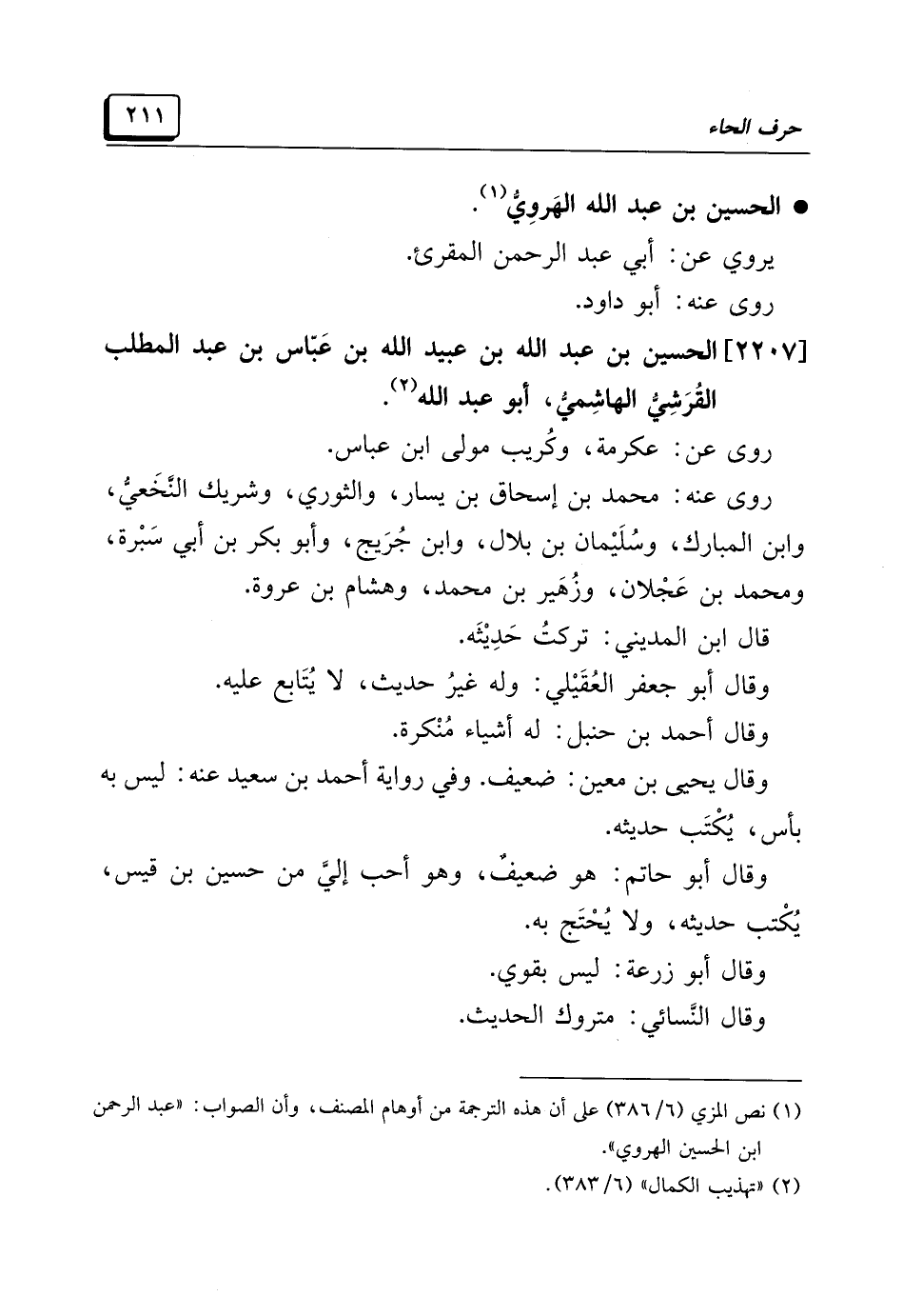 (¬١) نص المزي (٦/ ٣٨٦) على أن هذه الترجمة من أوهام المصنف، وأن الصواب: "عبد الرحمن ابن الحسين الهروي".