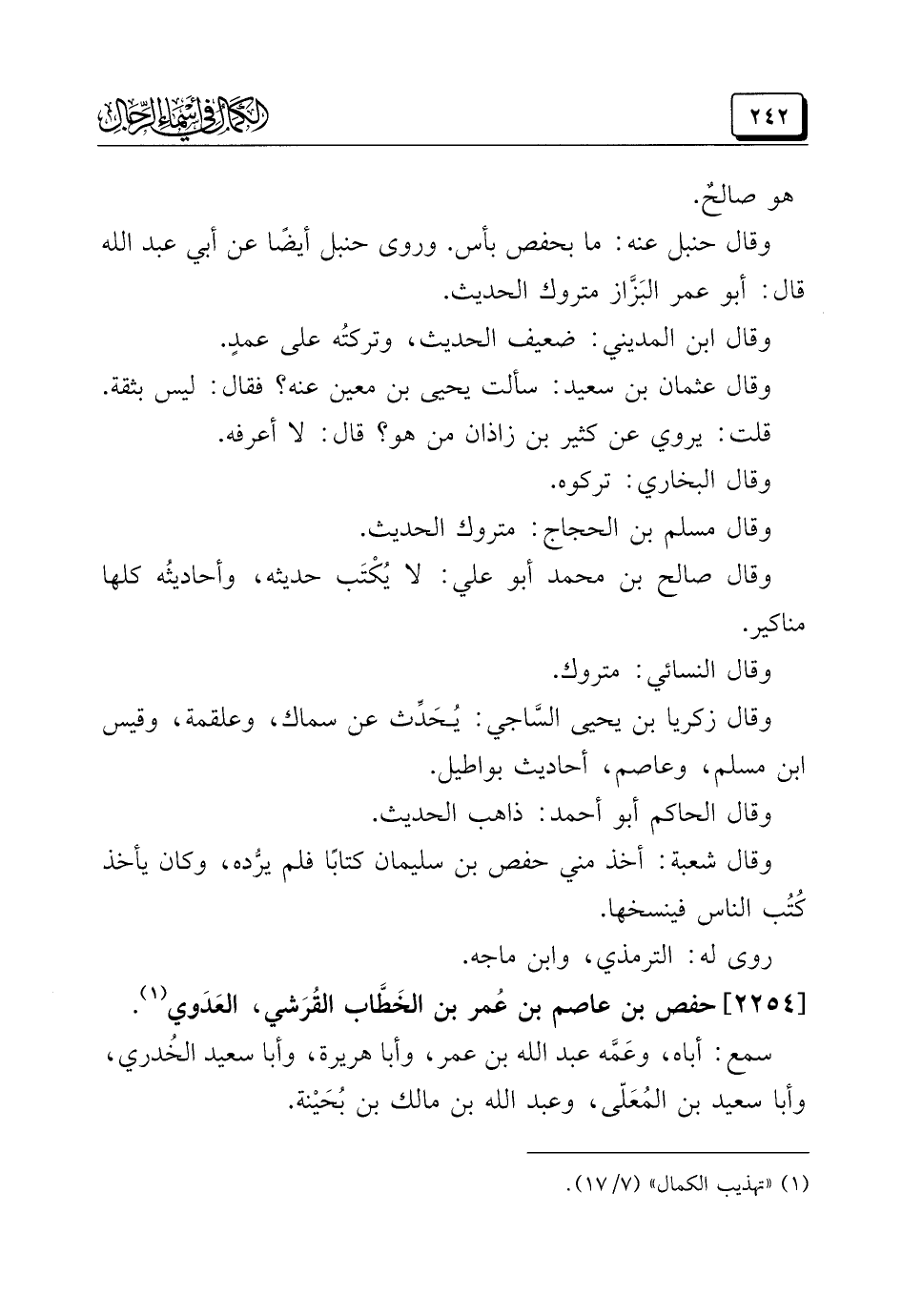 (¬١) "تهذيب الكمال" (٧/ ١٧).