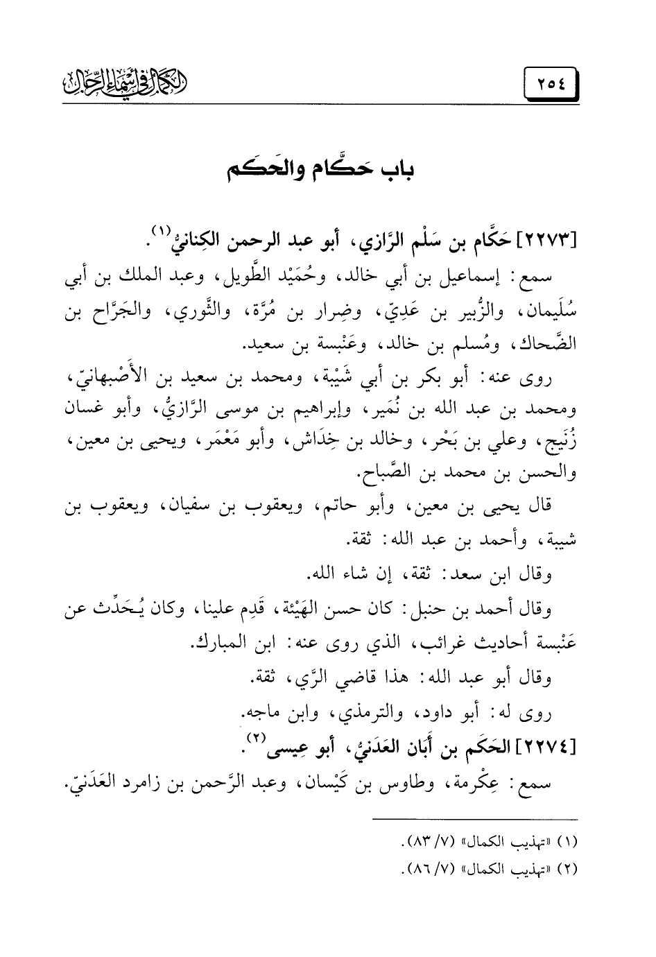 (¬٢) "تهذيب الكمال" (٧/ ٨٦).