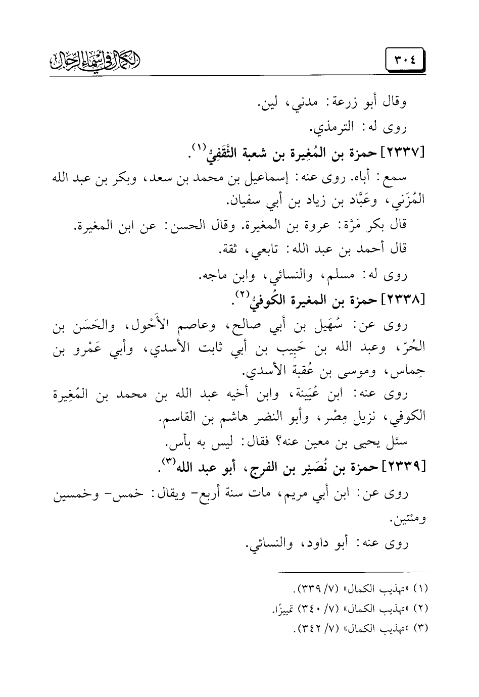 (¬٢) "تهذيب الكمال" (٧/ ٣٤٠) تمييزًا.