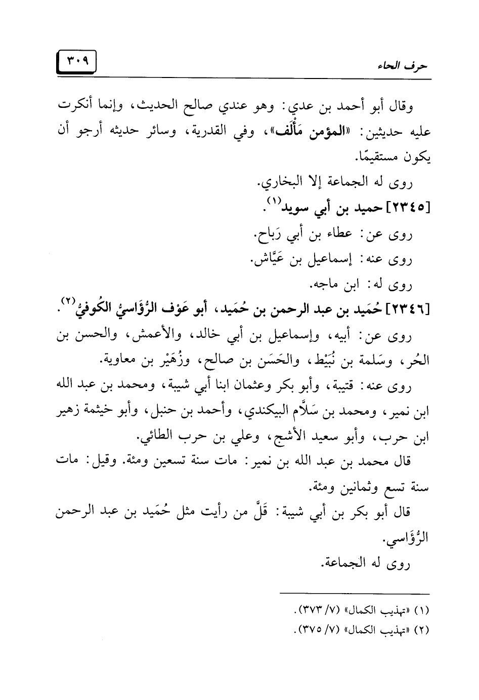 [٢٣٤٦] حُمَيد بن عبد الرحمن بن حُمَيد، أبو عَوْف الرُّؤَاسيُّ الكُوفِيُّ (¬٢).
