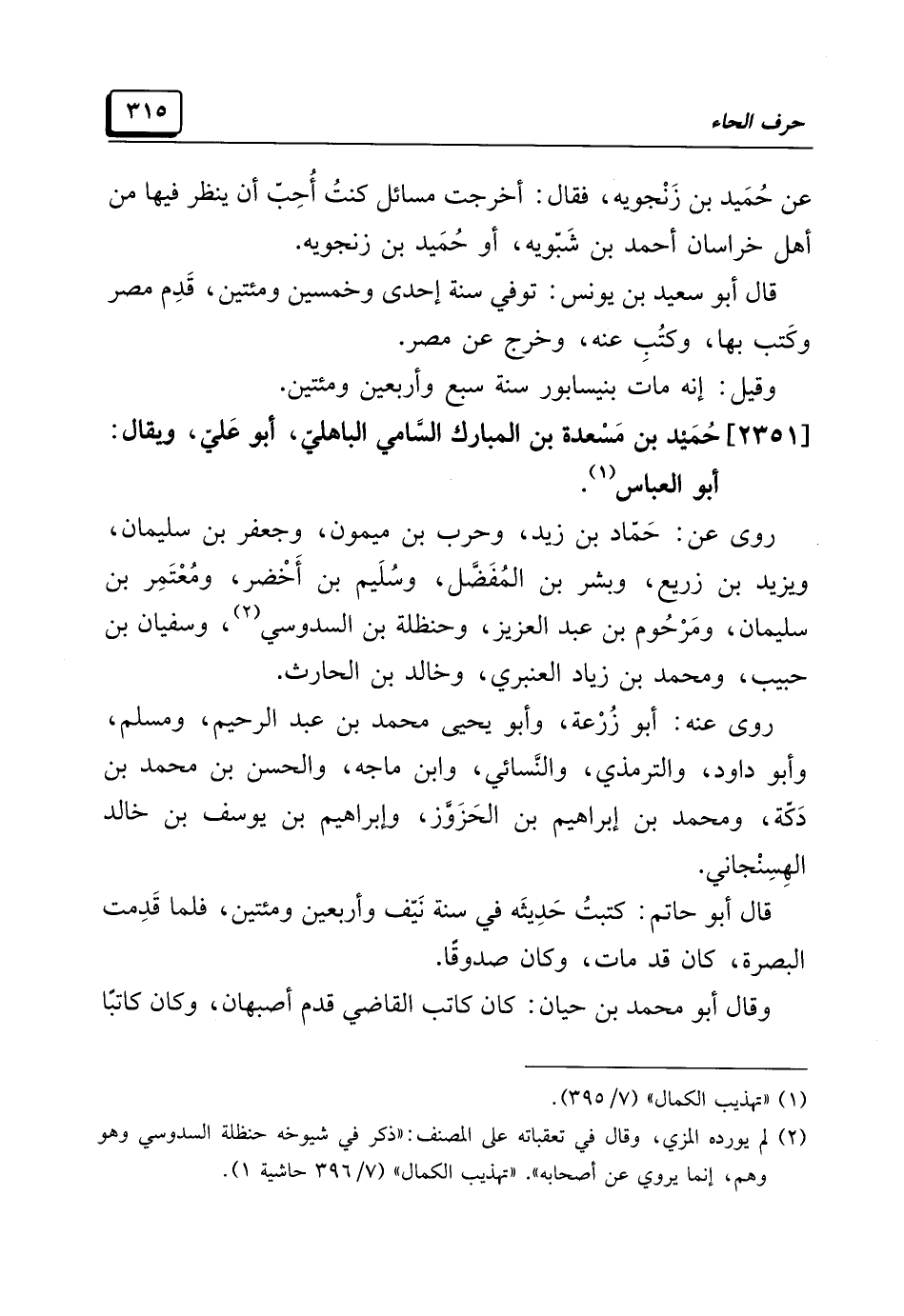 [٢٣٥١] حُمَيْد بن مَسْعدة بن المُبَارَك السَّامِيّ البَاهِلِيّ، أبو عَلِيّ، ويقال: أبو العبَّاس (¬١).