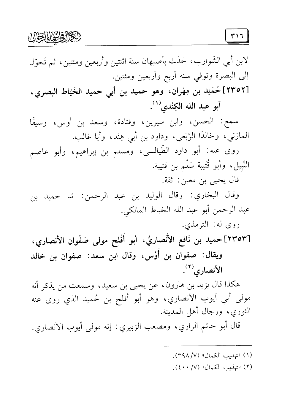 (¬٢) "تهذيب الكمال" (٧/ ٤٠٠).