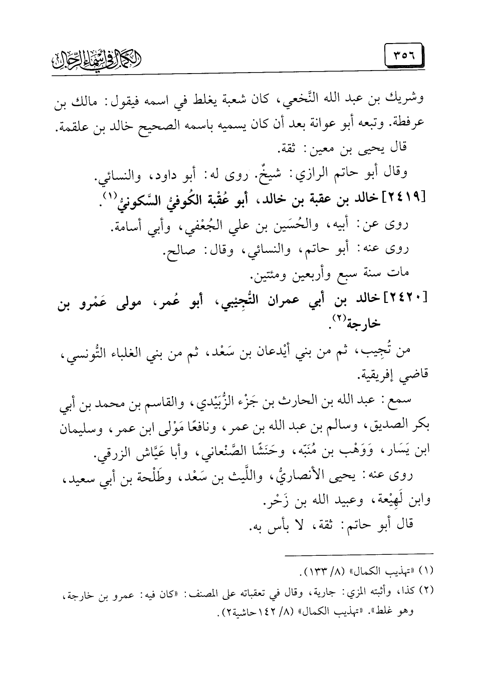 [٢٤١٩] خالد بن عُقبة بن خالد، أبو عُقبة الكُوفِيُّ السَّكونيُّ (¬١).