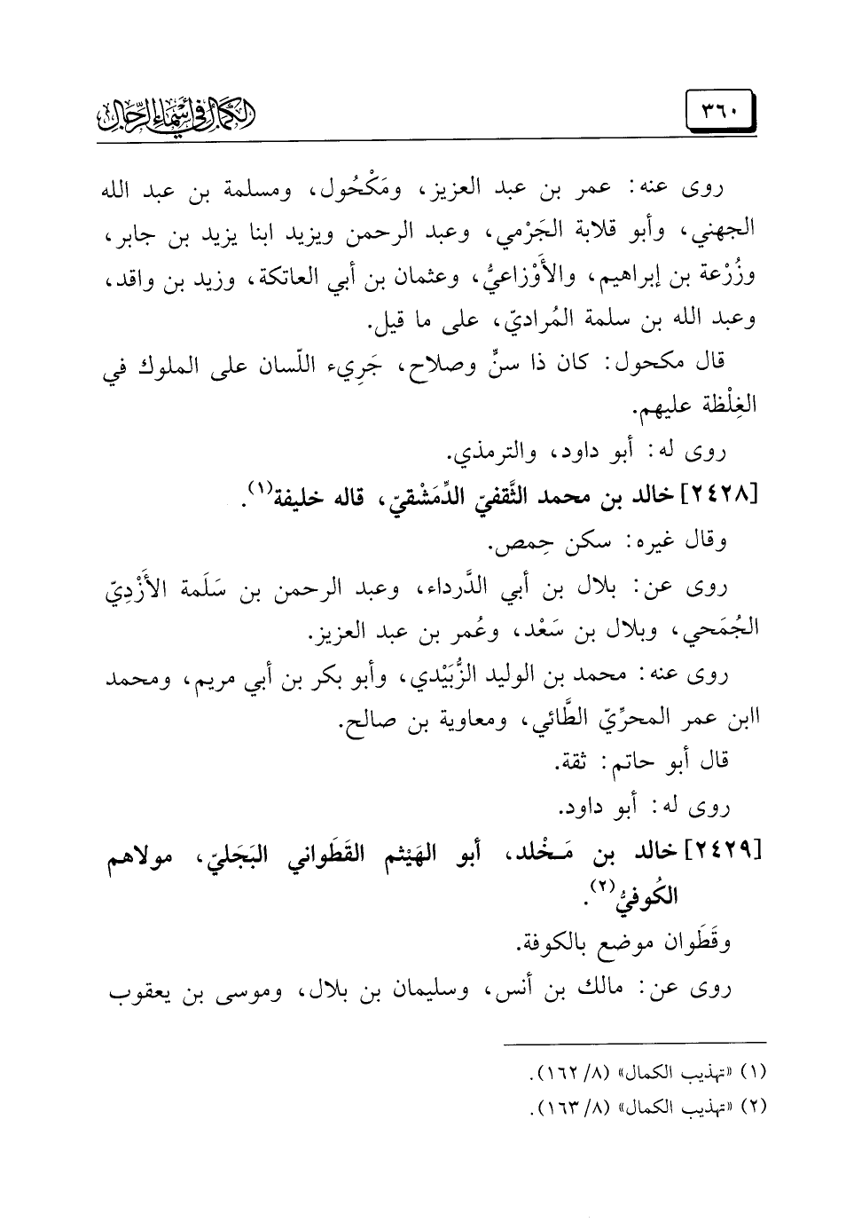 (¬٢) "تهذيب الكمال" (٨/ ١٦٣).