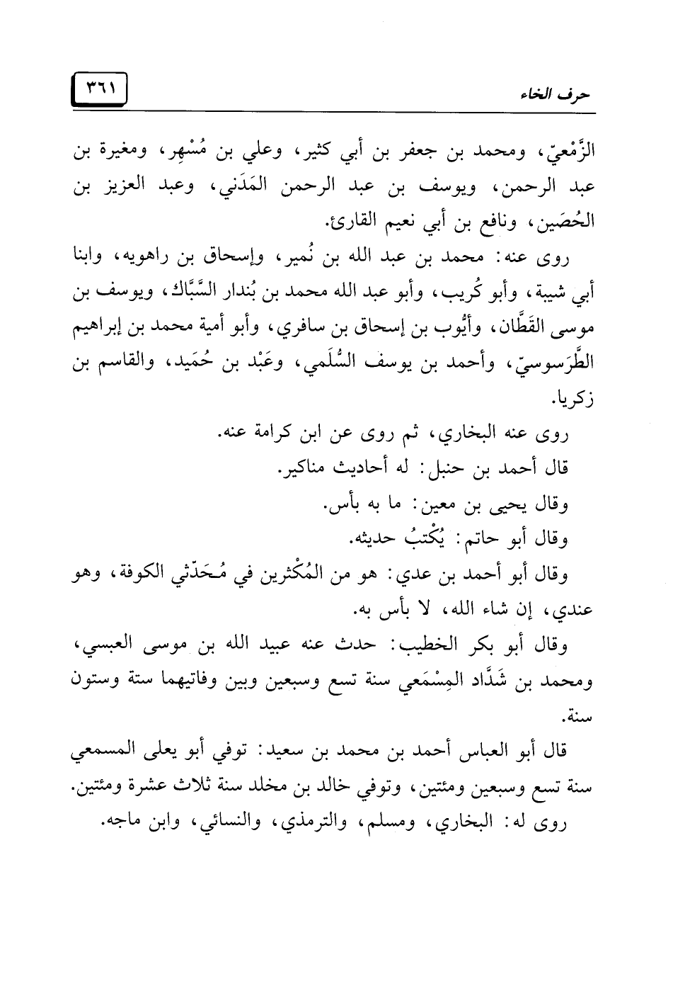 روى عنه البُخَاري، ثمَّ روى عن ابن كرامة عنه.