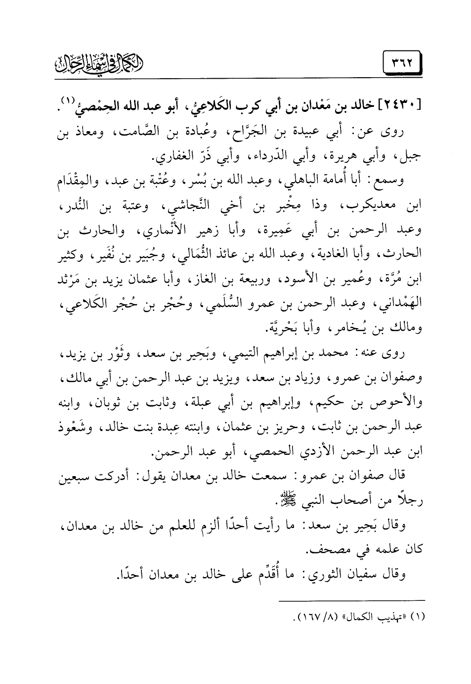 (¬١) "تهذيب الكمال" (٨/ ١٦٧).