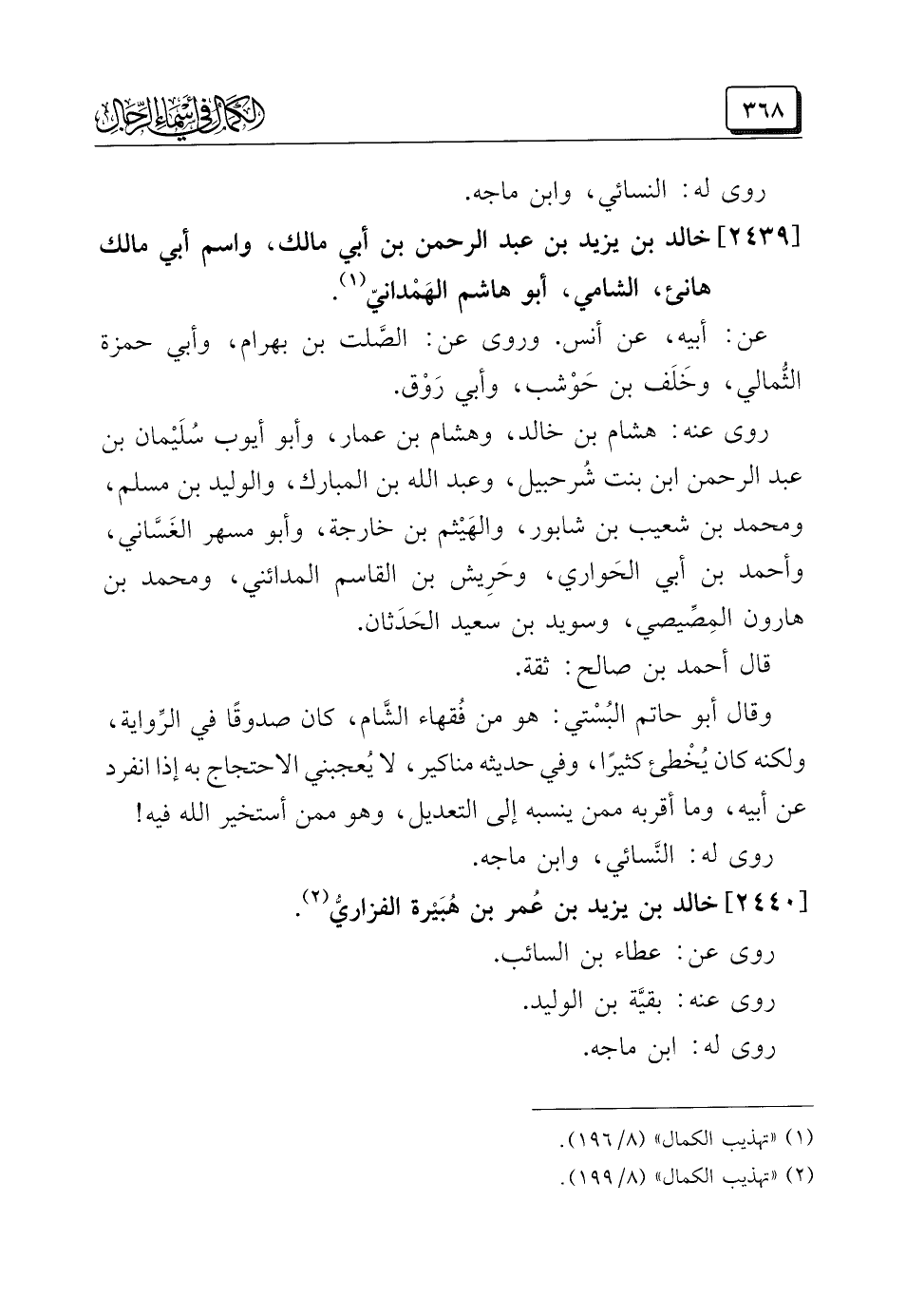 (¬٢) "تهذيب الكمال" (٨/ ١٩٩).