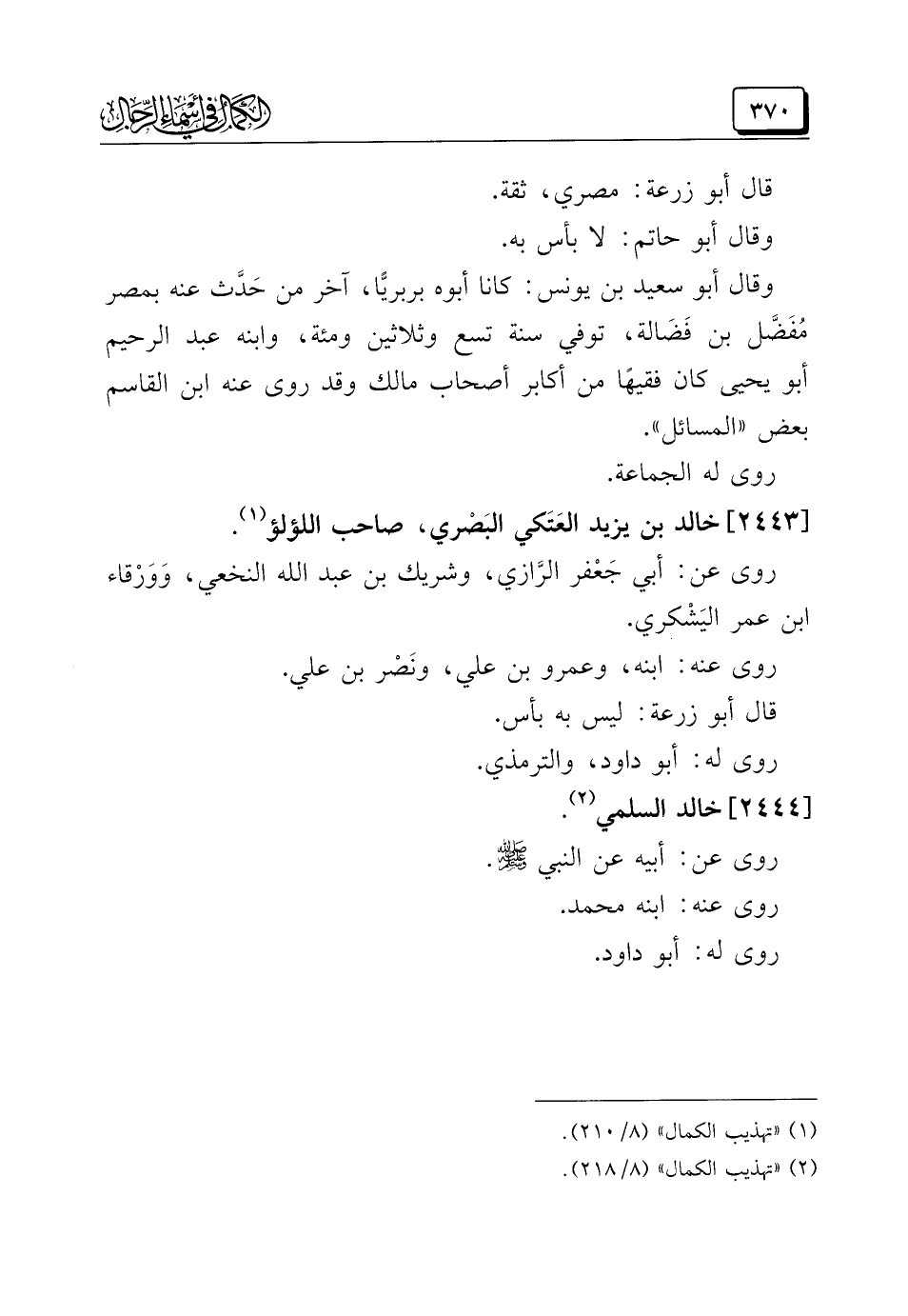 (¬٢) "تهذيب الكمال" (٨/ ٢١٨).