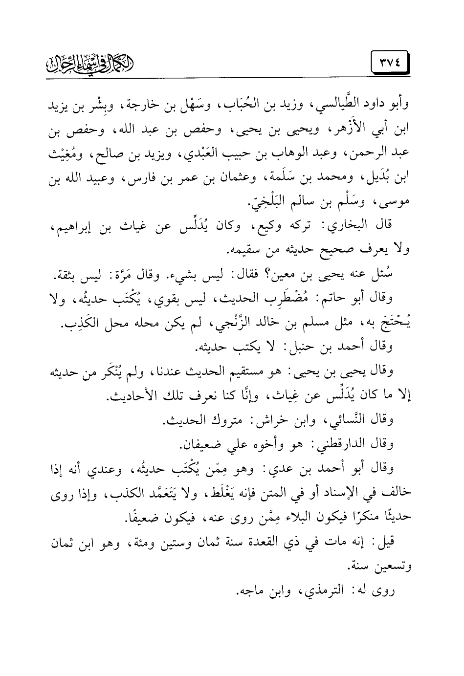 وقال يحيى بن يحيى: هو مستقيم الحديث عندنا، ولم يُنْكَر من حديثه إلَّا ما كان يُدَلِّس عن غِياث، وإنَّا كنا نعرف تلك الأحاديث.