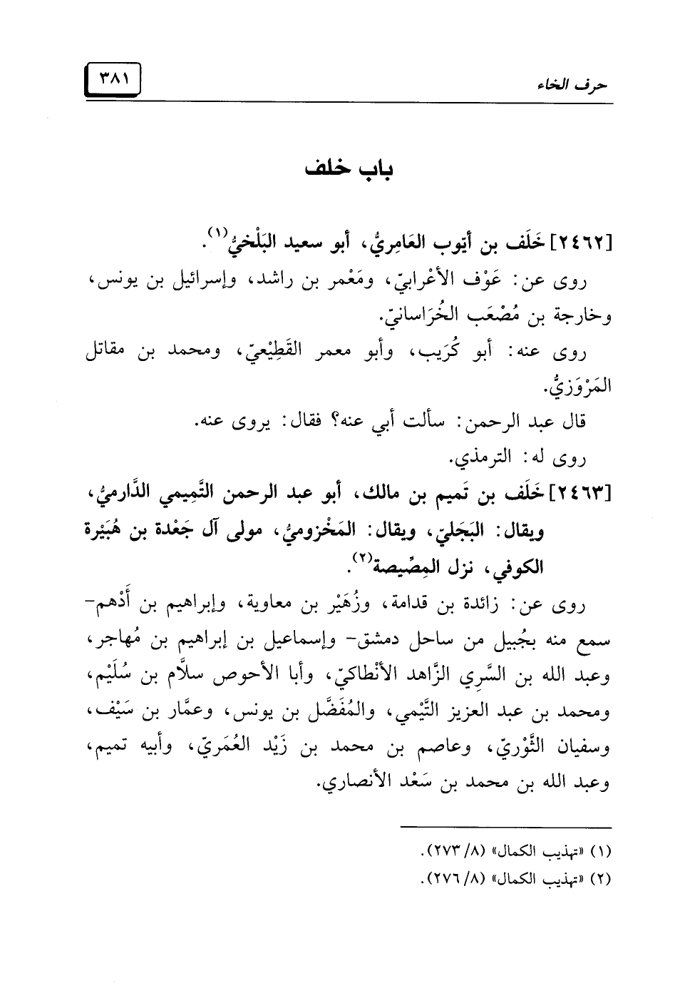 (¬١) "تهذيب الكمال" (٨/ ٢٧٣).
