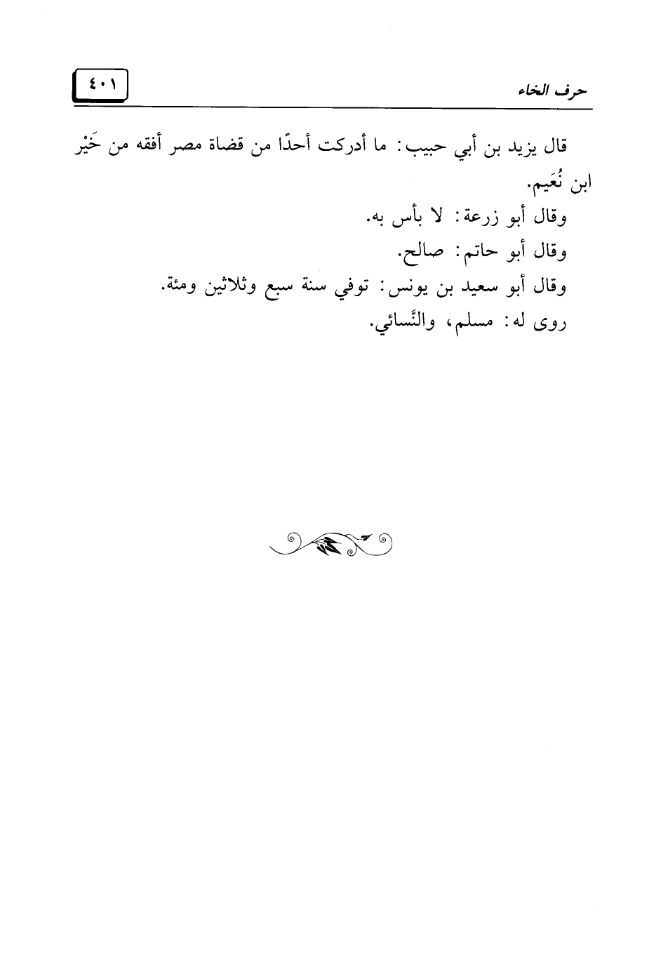 قال يزيد بن أبي حَبِيب: ما أدركت أحدًا من قضاة مصر أفَقه من خَيْر ابن نُعَيم.