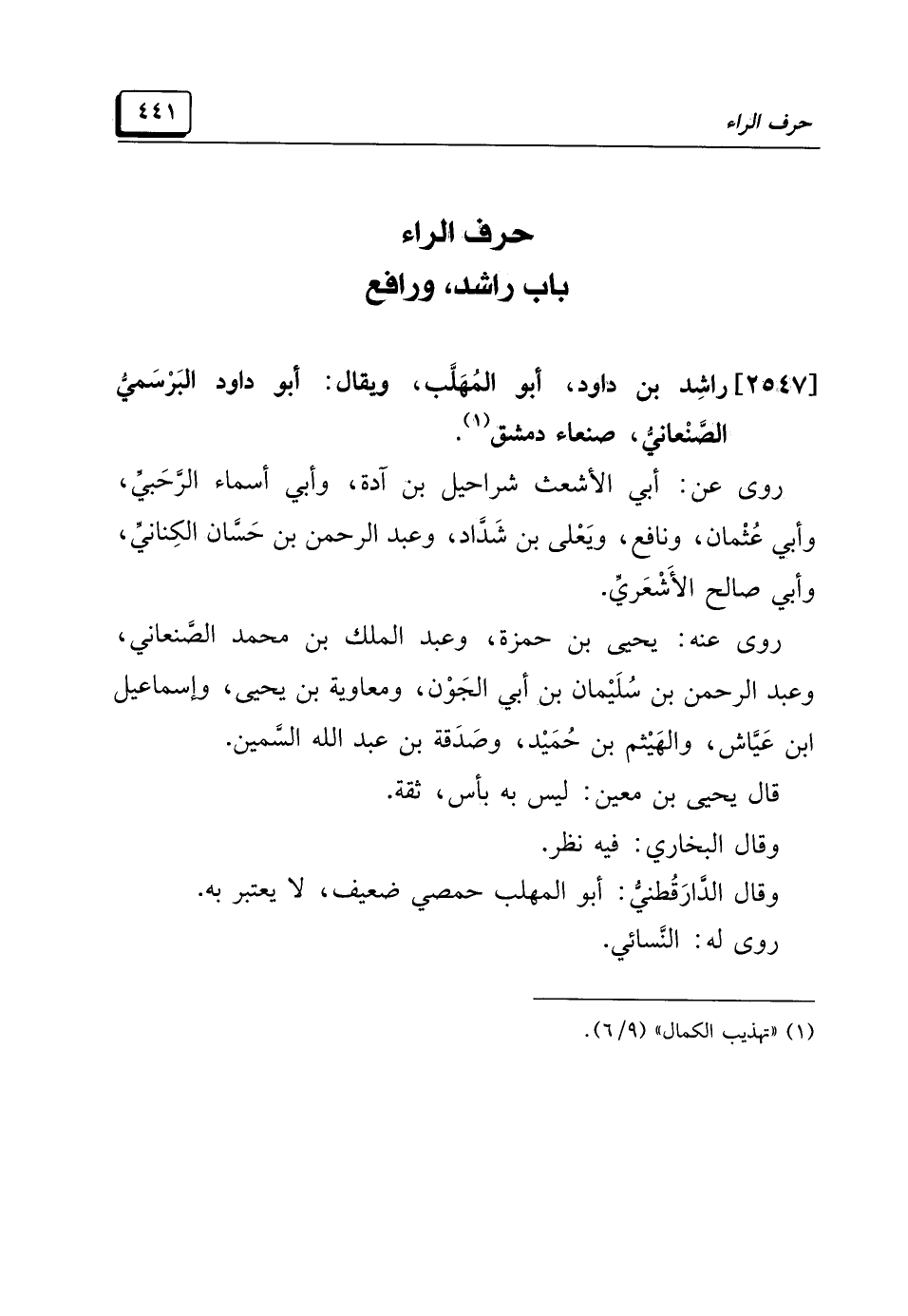 (¬١) "تهذيب الكمال" (٩/ ٦).