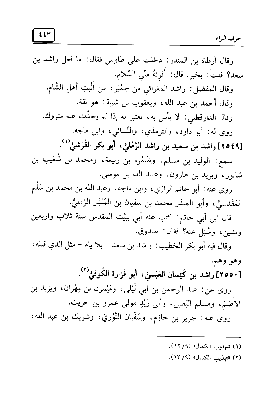 (¬١) "تهذيب الكمال" (٩/ ١٢).