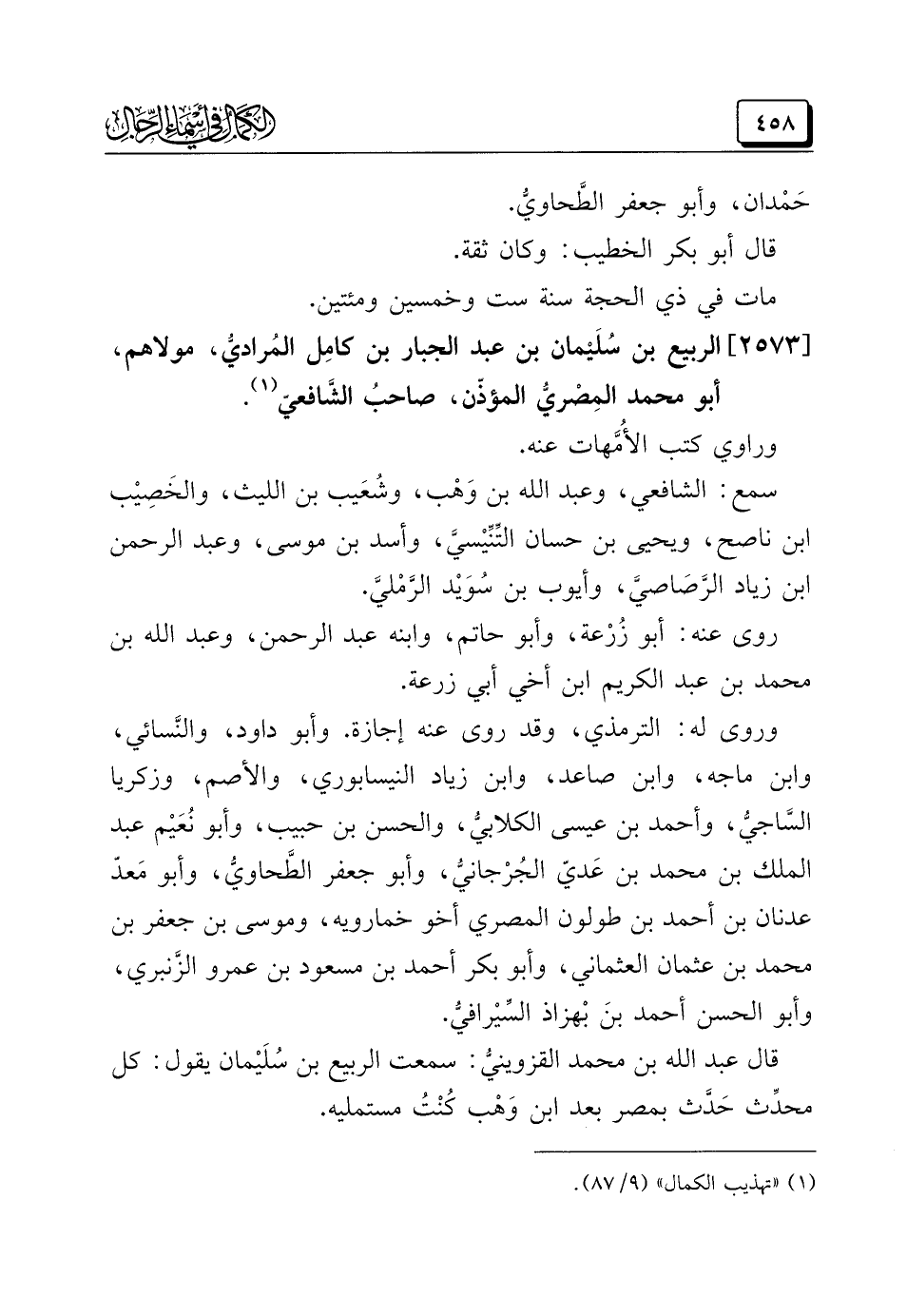 (¬١) "تهذيب الكمال" (٩/ ٨٧).