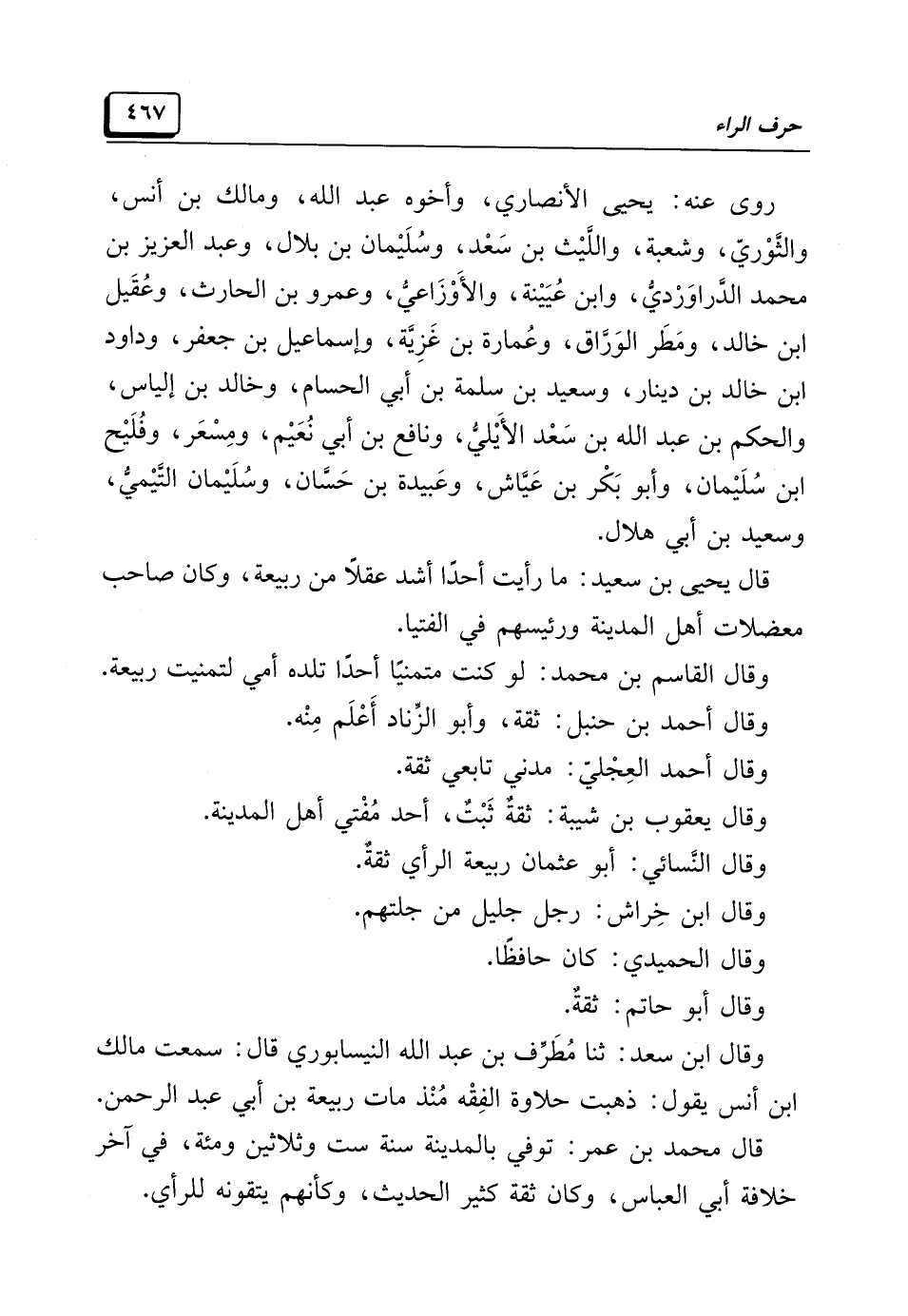 وقال النَّسائي: أبو عثمان ربيعة الرأي ثقةٌ.