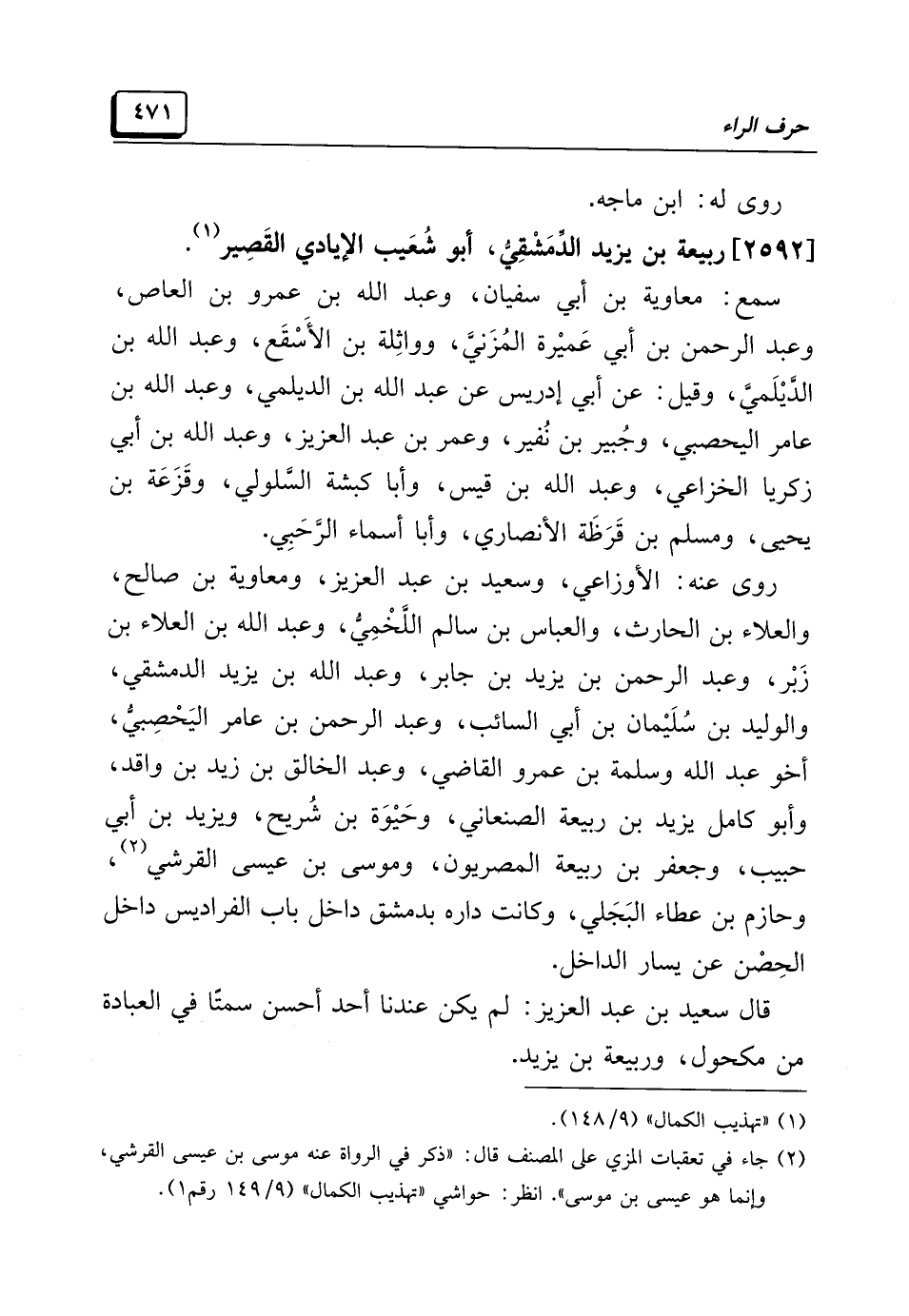(¬١) "تهذيب الكمال" (٩/ ١٤٨).
