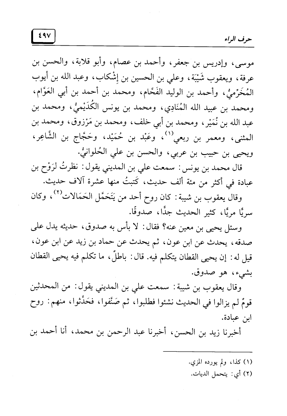 وقال يعقوب بن شَيْبَة: سمعت عليّ بن المَدِيني يقول: من المحدِّثين قومٌ لم يزالوا في الحديث نشئوا فطلبوا، ثم صَنَّفوا، فحدَّثوا، منهم: روح ابن عُبَادَة.