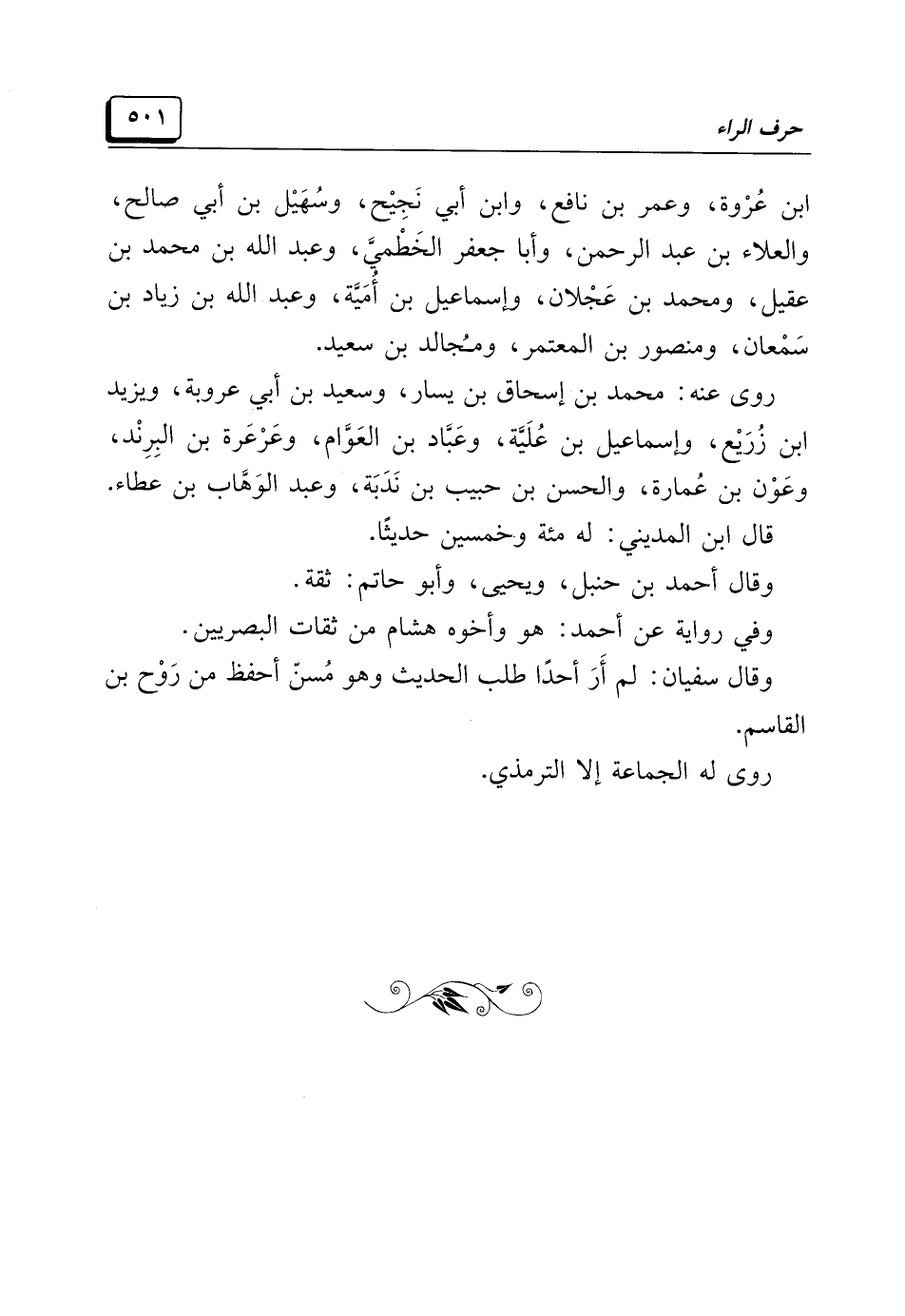 وقال سفيان: لم أَرَ أحدًا طلب الحديث وهو مُسنّ أحفظ من رَوْح بن القاسم.