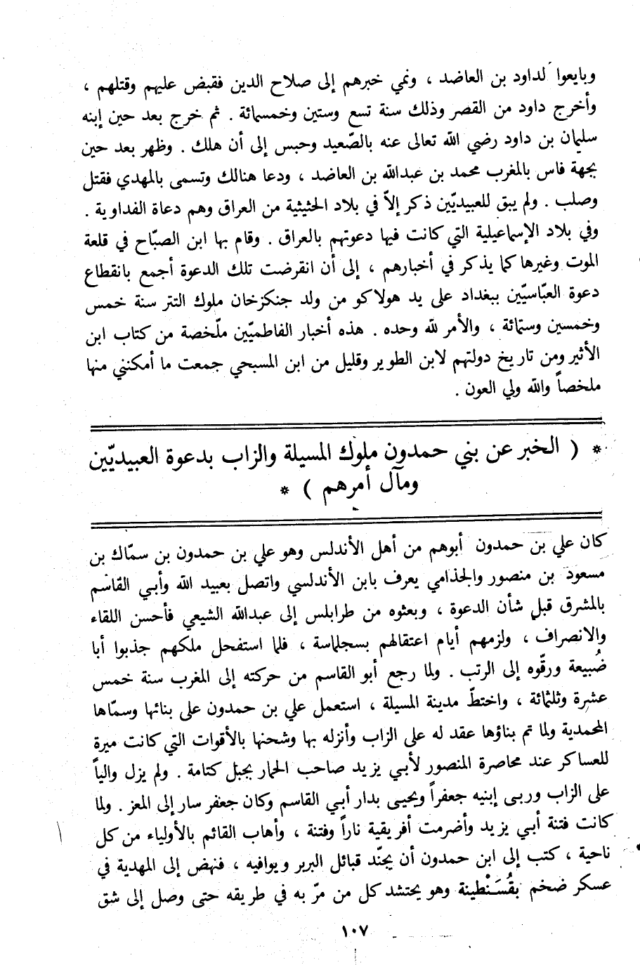 (الخبر عن بني حمدون ملوك المسيلة والزاب بدعوة العبيديّين ومآل أمرهم)