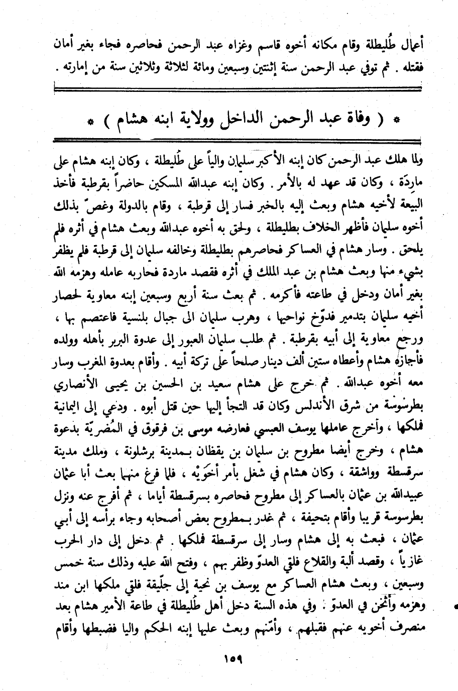 أعمال طليطلة وقام مكانه أخوه قاسم وغزاه عبد الرحمن فحاصره فجاء بغير أمان فقتله. ثم توفي عبد الرحمن سنة اثنتين وسبعين ومائة لثلاثة وثلاثين سنة من إمارته.