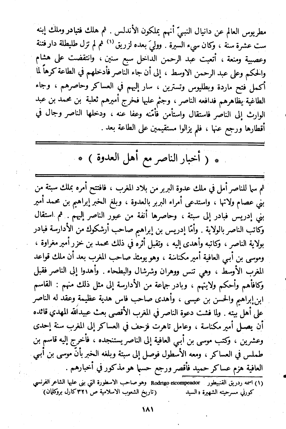 [1] اسمه ردريق القنبيطور drigoelcompeador وهو صاحب الاسطورة التي بنى عليها الشاعر الفرنسي كورني مسرحيته الشهيرة «السيد (تاريخ الشعوب الإسلامية ص 321 كارل بروكلمان)