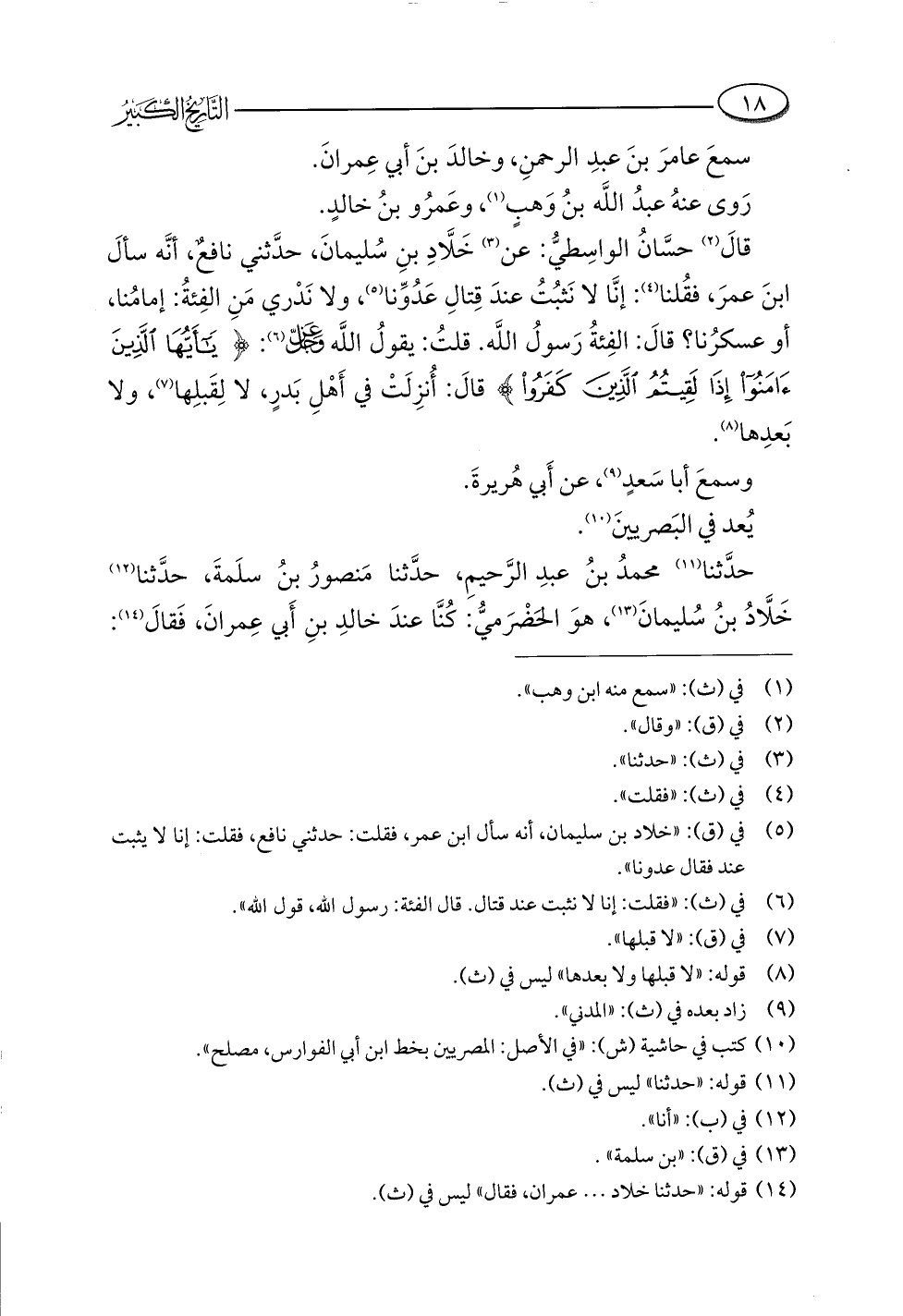 (¬١٤) قوله: "حدثنا خلاد. . . عمران، فقال" ليس في (ث).