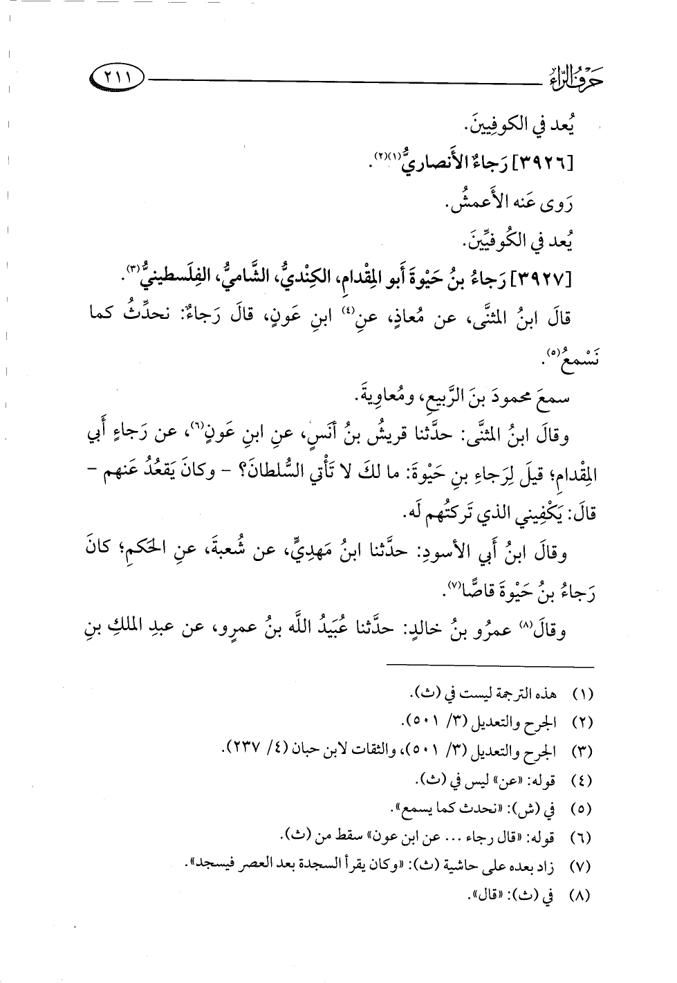 (¬٦) قوله: "قال رجاء. . . عن ابن عون" سقط من (ث).