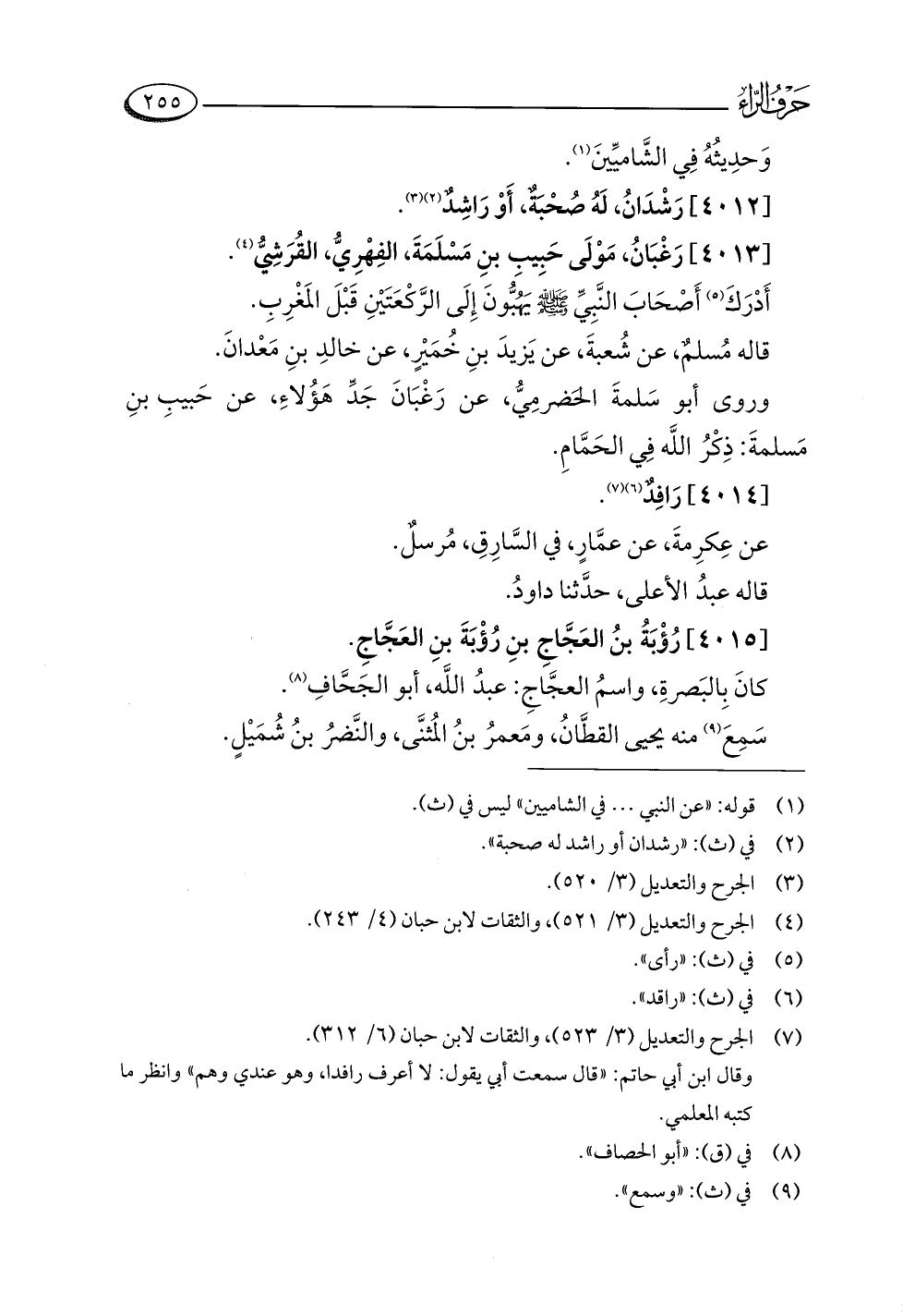 وقال ابن أبي حاتم: "قال سمعت أبي يقول: لا أعرف رافدا، وهو عندي وهم" وانظر ما كتبه المعلمي.