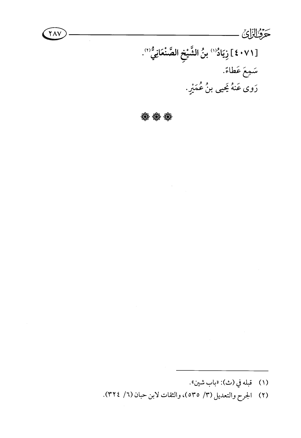 [٤٠٧١] زِيَادُ (¬١) بنُ الشَّيْخِ الصَّنْعَانِيُّ (¬٢).