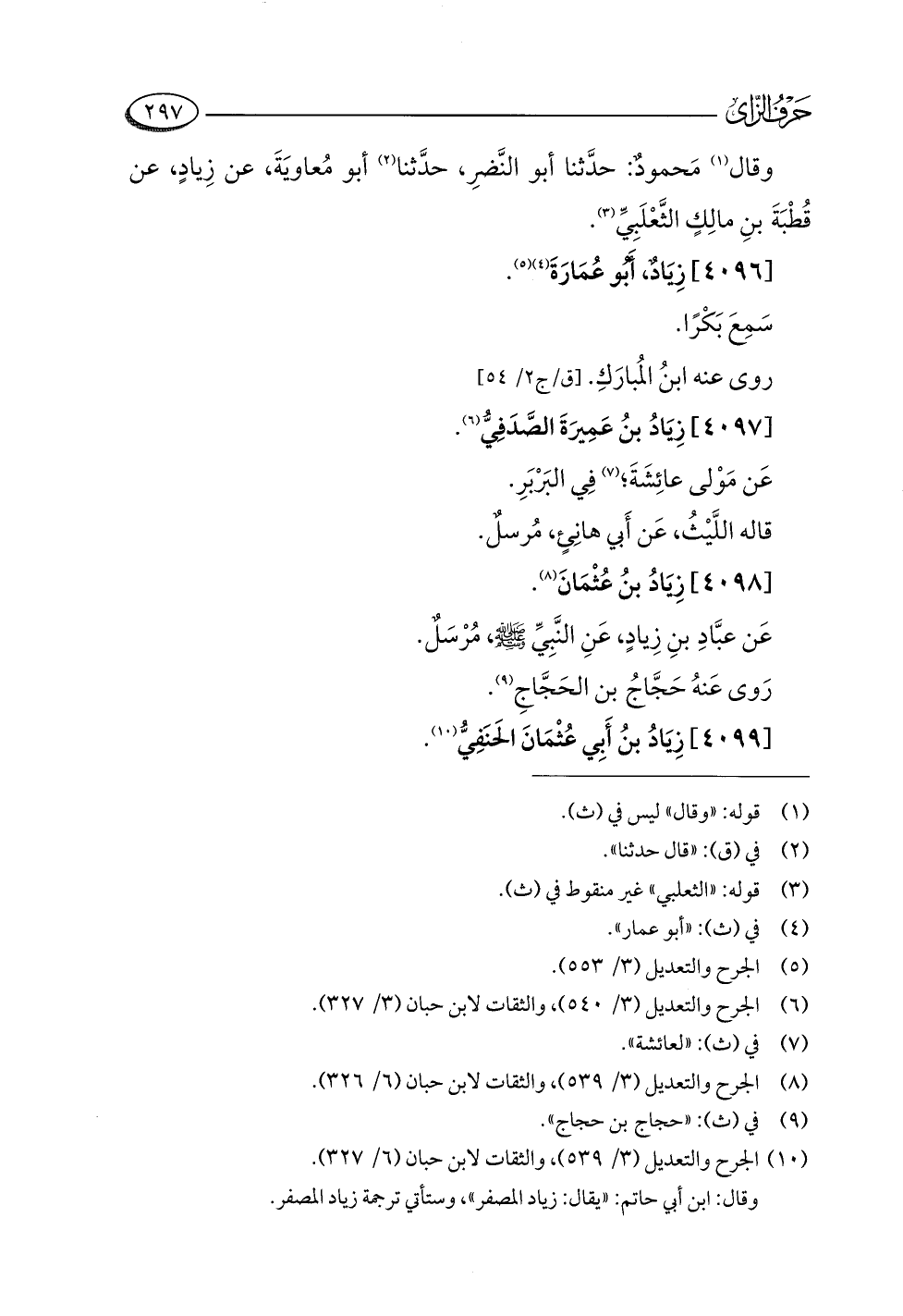 وقال: ابن أبي حاتم: "يقال: زياد المصفر"، وستأتي ترجمة زياد المصفر.