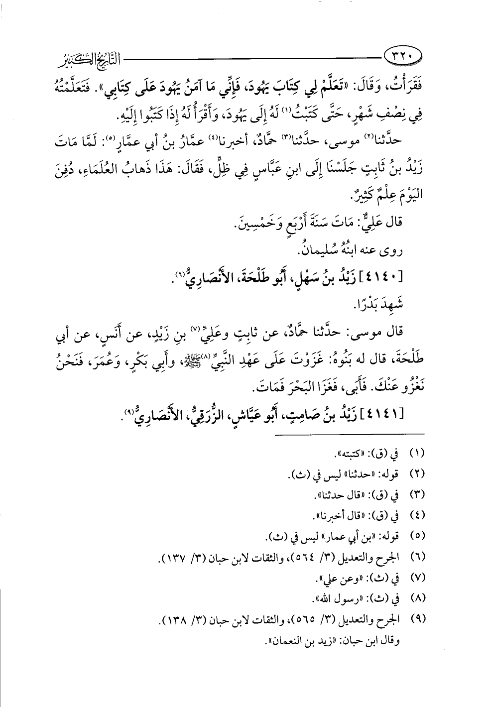 حدَّثنا (¬٢) موسى، حدَّثنا (¬٣) حمَّادٌ، أخبرنا (¬٤) عمَّارُ بنُ أبي عمَّارٍ (¬٥): لَمَّا مَاتَ زَيْدُ بنُ ثَابِتٍ جَلَسْنَا إِلَى ابنِ عَبَّاسٍ فِي ظِلٍّ، فَقَالَ: هَذَا ذَهابُ العُلَمَاءِ، دُفِنَ اليَوْمَ عِلْمٌ كَثِيرٌ.