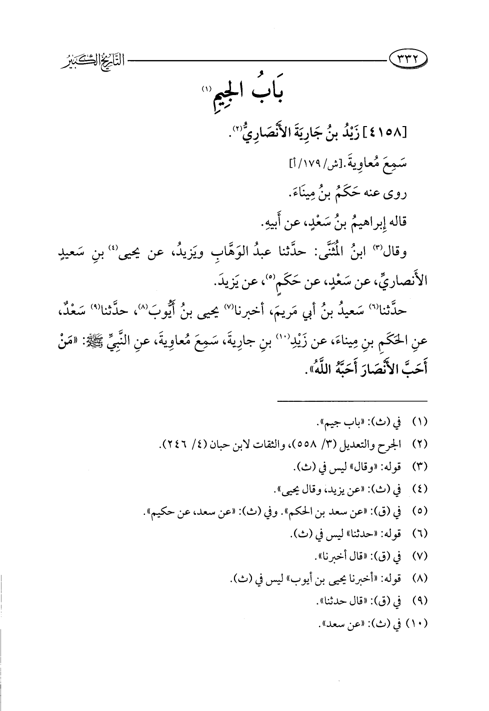 حدَّثنا (¬٦) سَعيدُ بنُ أبي مَريمَ، أخبرنا (¬٧) يحيى بنُ أَيُّوبَ (¬٨)، حدَّثنا (¬٩) سَعْدٌ، عنِ الحَكَمِ بنِ مِيناءَ، عن زَيْدِ (¬١٠) بنِ جارِيةَ، سَمِعَ مُعاوِيةَ، عنِ النَّبِيِّ -صلى اللَّه عليه وسلم-: "مَنْ أَحَبَّ الأَنْصَارَ أَحَبَّهُ اللَّهُ".