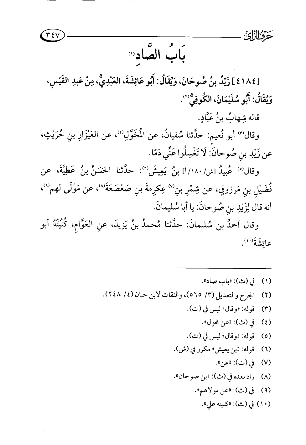 وقال (¬٥) عُبيدُ بنُ يَعِيشَ (¬٦): حدَّثنا الحَسَنُ بنُ عَطِيَّةَ، عن فُضَيْلِ بنِ مَرزوقٍ، عن شِمْرِ بنِ (¬٧) عِكرِمةَ بنِ صَعْصَعَةَ (¬٨)، عن مَوْلًى لهم (¬٩)، أنه قال لِزَيْدِ بنِ صُوحانَ: يا أبا سُليمانَ.