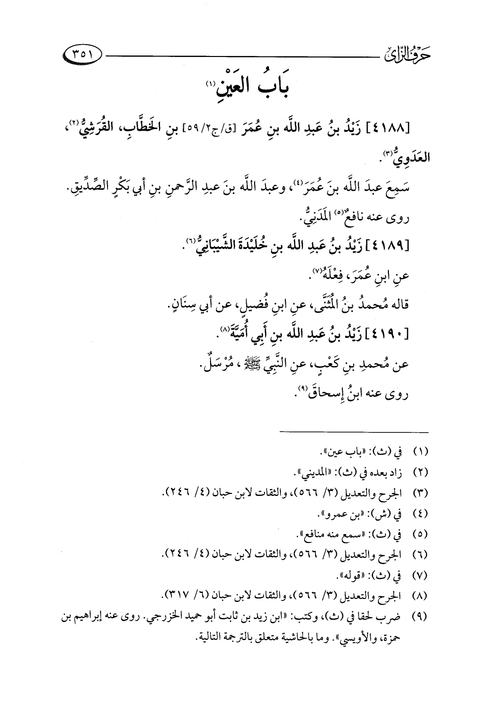 (¬٩) ضرب لحقا في (ث)، وكتب: "ابن زيد بن ثابت أبو حميد الخزرجي. روى عنه إبراهيم بن حمزة، والأويسي". وما بالحاشية متعلق بالترجمة التالية.