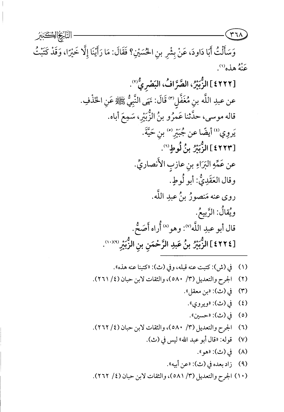 [٤٢٢٤] الزُّبَيْرُ بنُ عَبدِ الرَّحْمَنِ بنِ الزُّبَيْرِ (¬٩) (¬١٠).