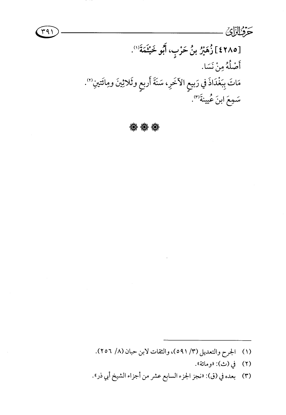 [٤٢٨٥] زُهيرُ بنُ حَرْبٍ، أَبُو خَيْثَمَةَ (¬١).