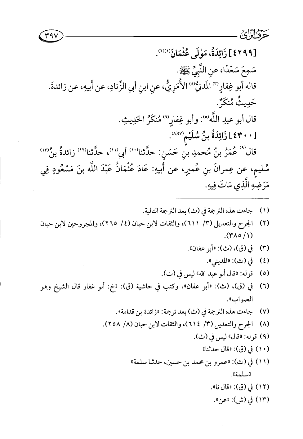 (¬٧) جاءت هذه الترجمة في (ث) بعد ترجمة: "زائدة بن قدامة".