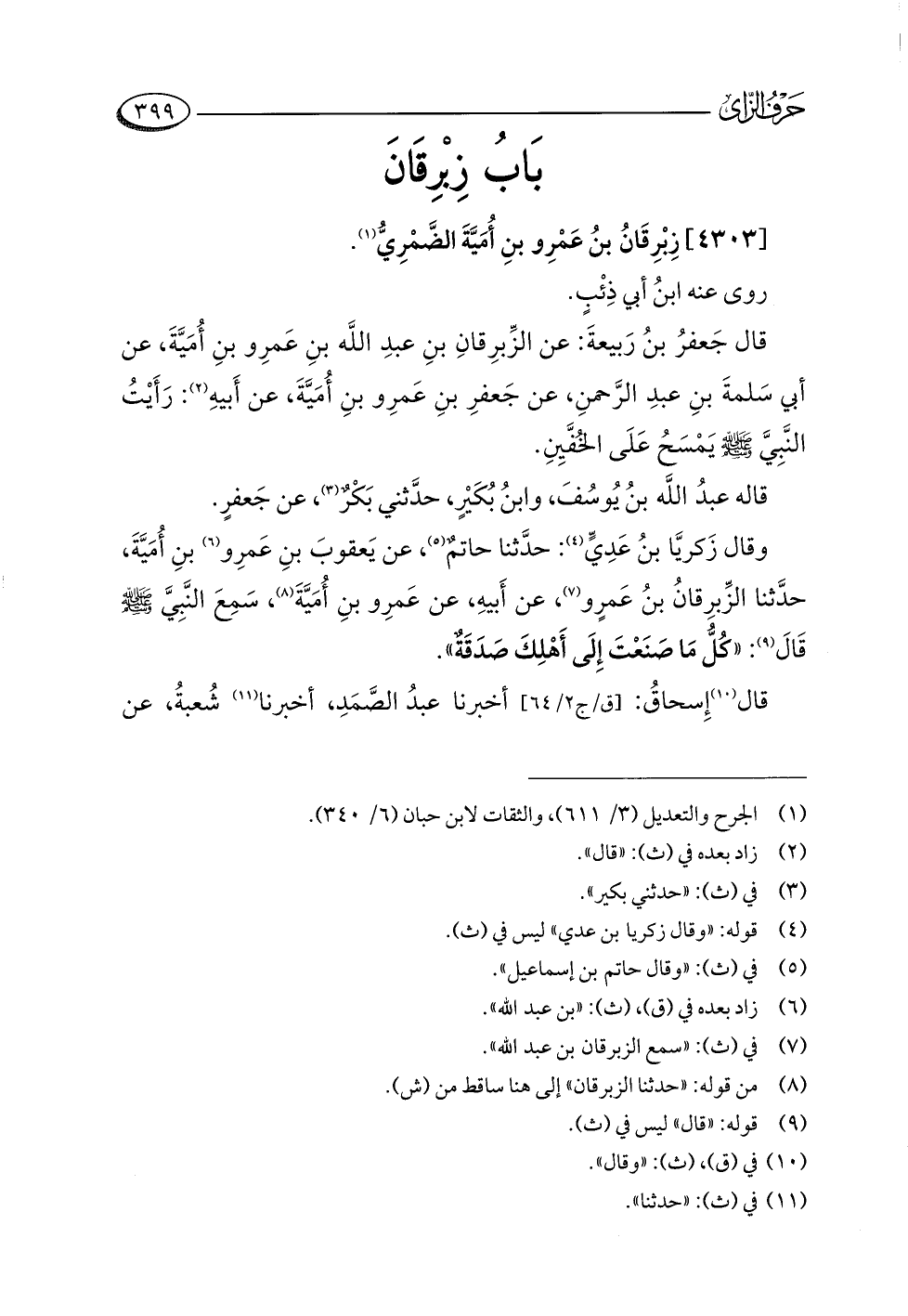 (¬٨) من قوله: "حدثنا الزبرقان" إلى هنا ساقط من (ش).