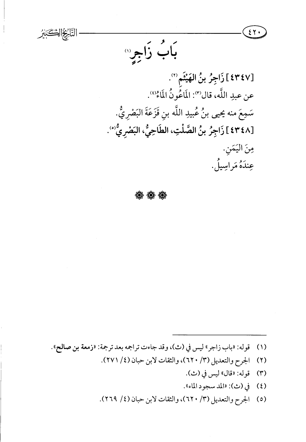 (¬١) قوله: "باب زاجر" ليس في (ث)، وقد جاءت تراجمه بعد ترجمة: "زمعة بن صالح".