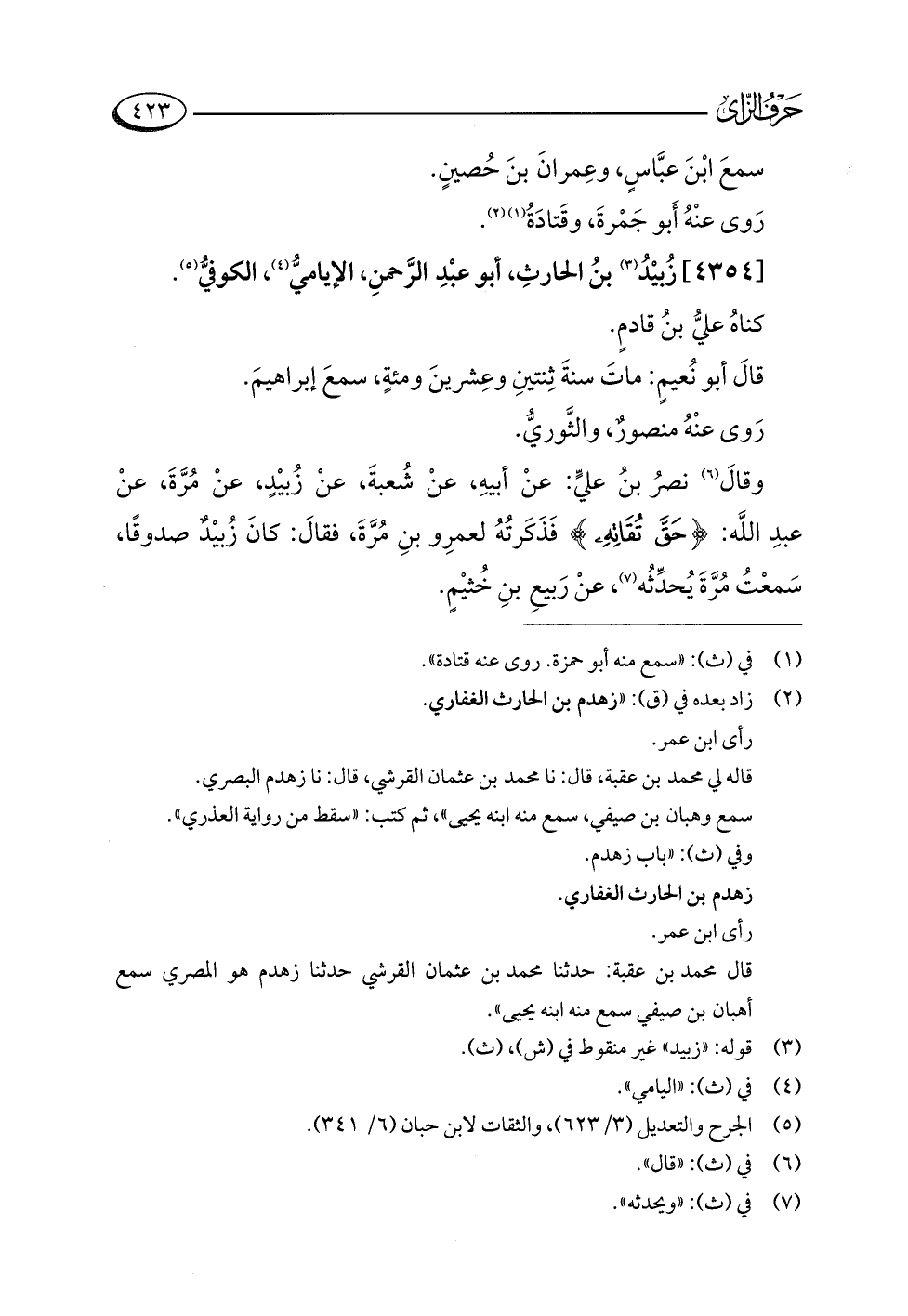 [٤٣٥٤] زُبيْدُ (¬٣) بنُ الحارثِ، أَبُو عبْدِ الرَّحمنِ، الإياميُّ (¬٤)، الكوفيُّ (¬٥).