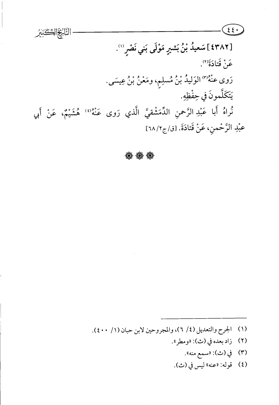 كتاب التاريخ الكبير للبخاري - ت الدباسي والنحال (اسم الجزء: 4)