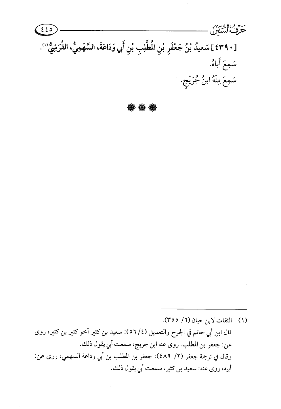 [٤٣٩٠] سَعيدُ بْنُ جَعْفَرِ بْنِ المُطَّلِبِ بْنِ أَبي وَدَاعَةَ، السَّهْمِيُّ، القُرَشِيُّ (¬١).