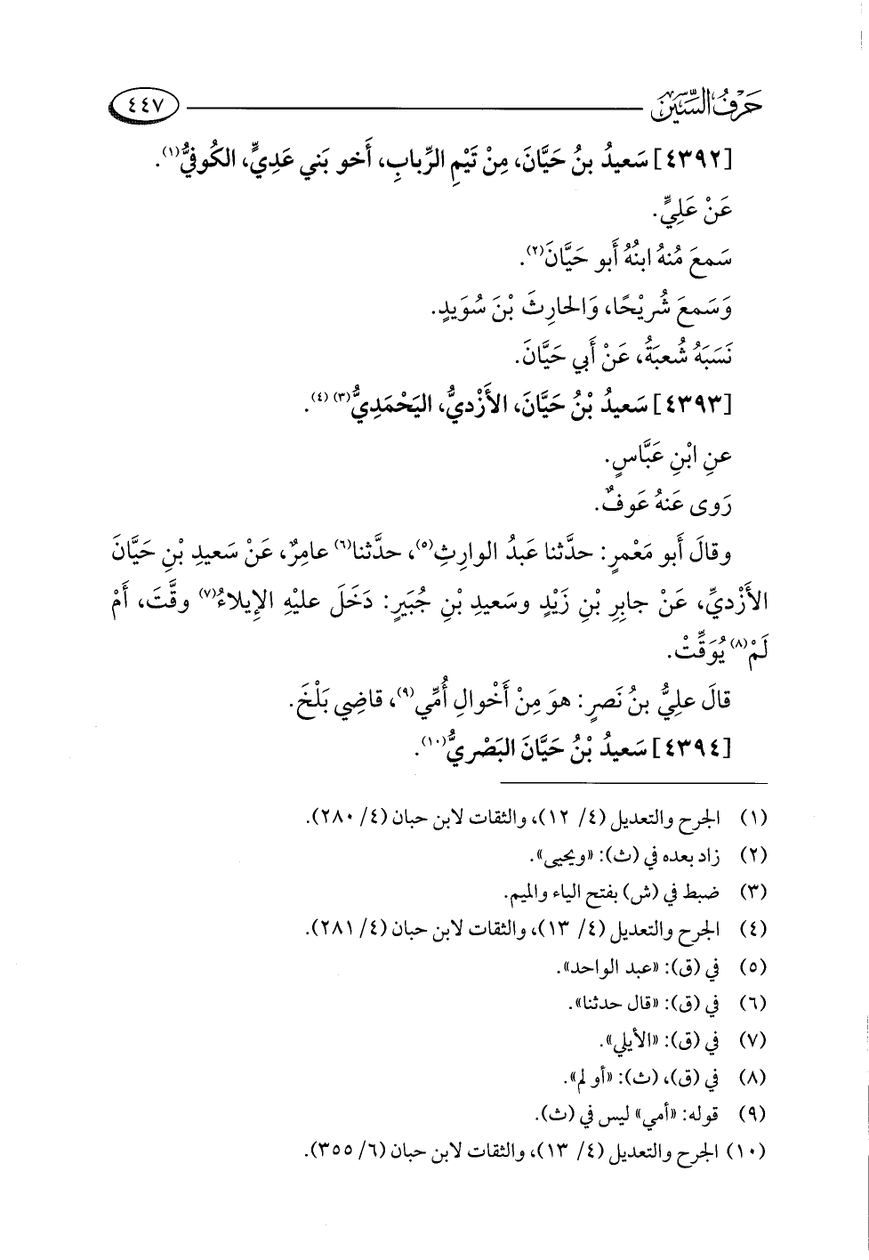 [٤٣٩٢] سَعيدُ بنُ حَيَّانَ، مِنْ تَيْمِ الرِّبابِ، أَخو بَني عَدِيٍّ، الكُوفيُّ (¬١).