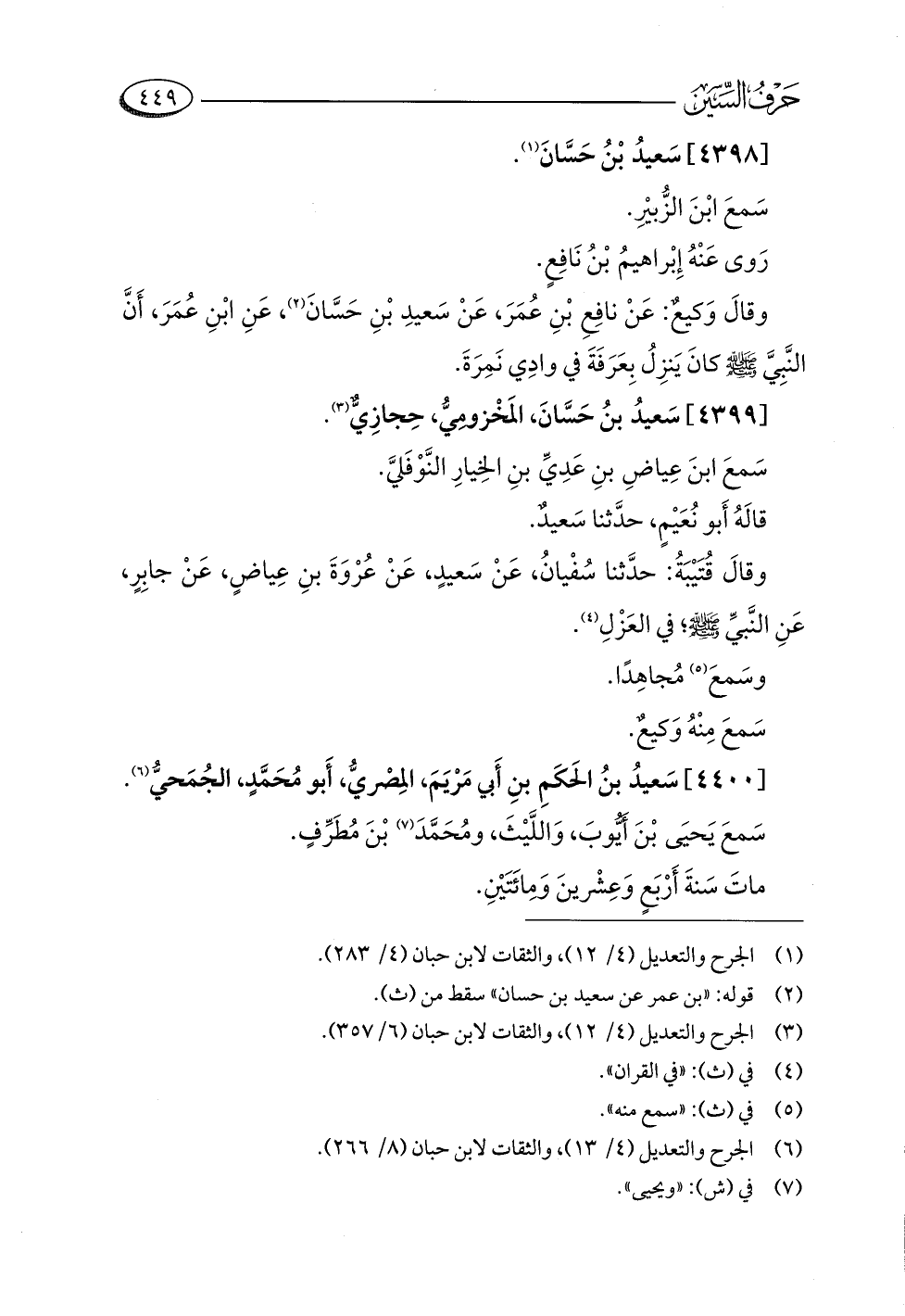 [٤٣٩٩] سَعيدُ بنُ حَسَّانَ، المَخْزومِيُّ، حِجازِيٌّ (¬٣).