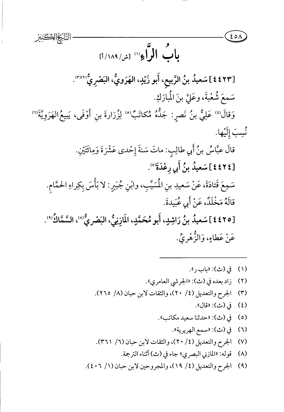 كتاب التاريخ الكبير للبخاري - ت الدباسي والنحال (اسم الجزء: 4)
