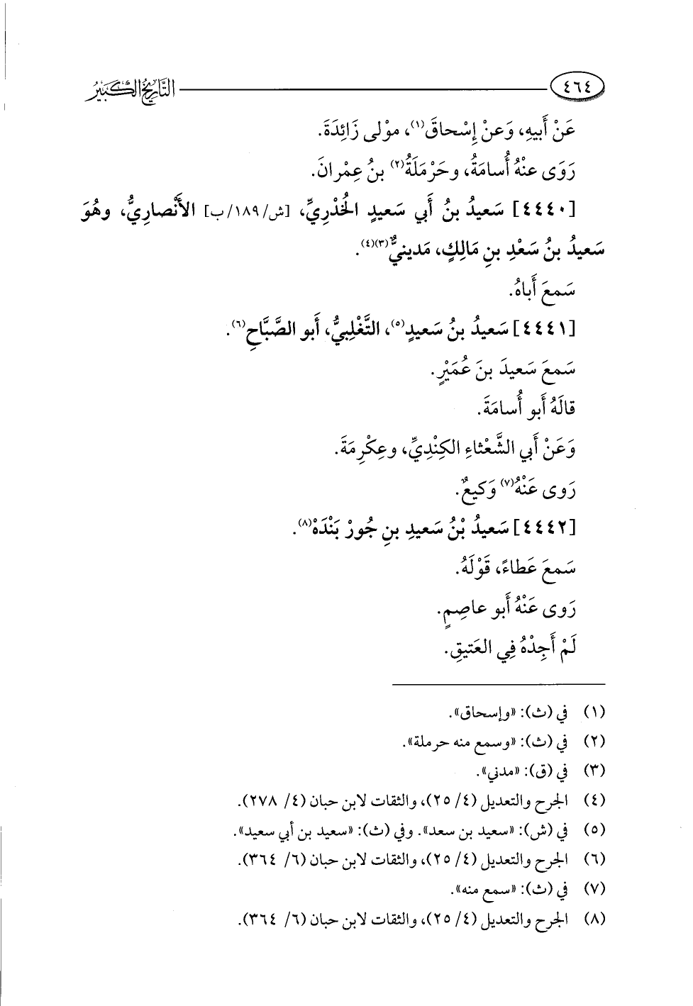 (¬٤) الجرح والتعديل (٤/ ٢٥)، والثقات لابن حبان (٤/ ٢٧٨).