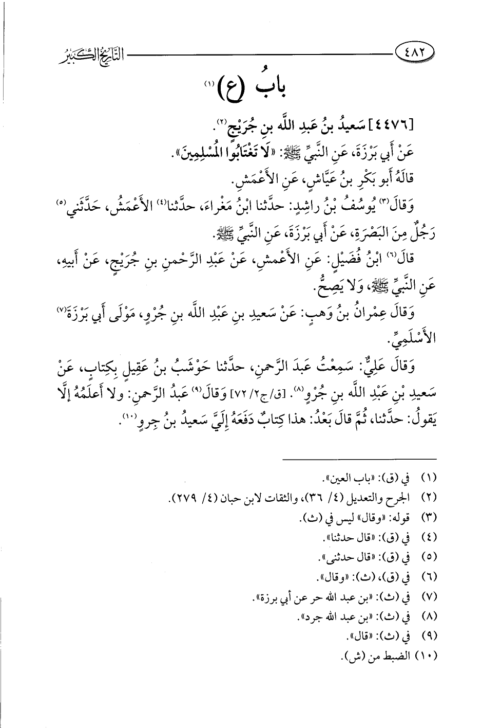[٤٤٧٦] سَعيدُ بنُ عَبدِ اللَّه بنِ جُرَيْجٍ (¬٢).